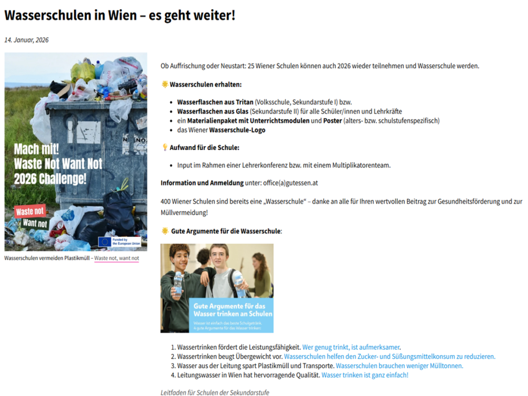 Wasser trinken an Wiener Schulen fördern – Wasserschule werden!